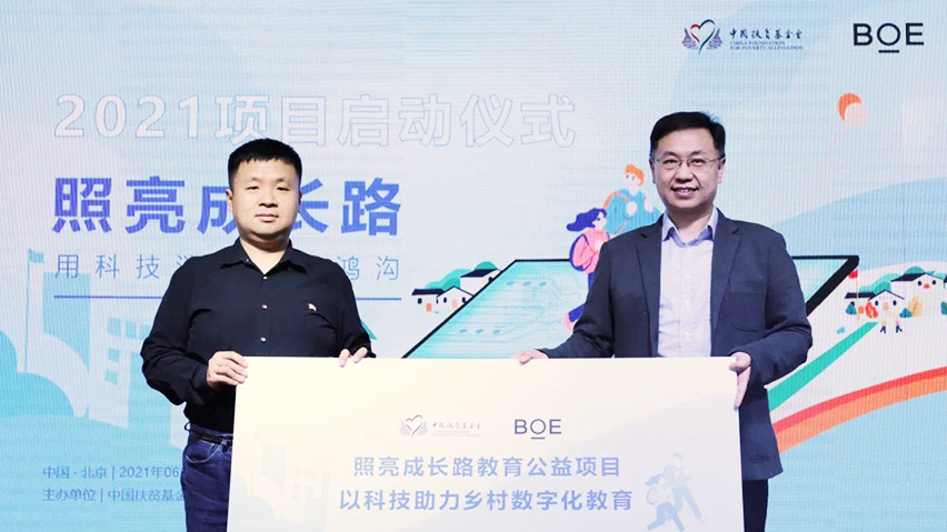 用科技消弭教育鴻溝 BOE(京東方)一直致力于教育、健康、文化等領域的公益事業,2014年開啟了“照亮成長路”教育公益項目。2021年,BOE(京東方)攜手中國扶貧基金會,對“照亮成長路”項目進行升級,分為智慧教室、夢想童行、圓夢計劃三個模塊。BOE(京東方)一直致力于教育、健康、文化等領域的公益事業,2014年開啟了“照亮成長路”教育公益項目。2021年,BOE(京東方)攜手中國扶貧基金會,對“照亮成長路”項目進行升級,分為智慧教室、夢想童行、圓夢計劃三個模塊。
