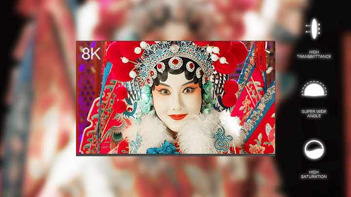 分辨率7680*4320,廣視角、高透過率、色飽和度高,細節纖毫畢現,臨場感無比震撼